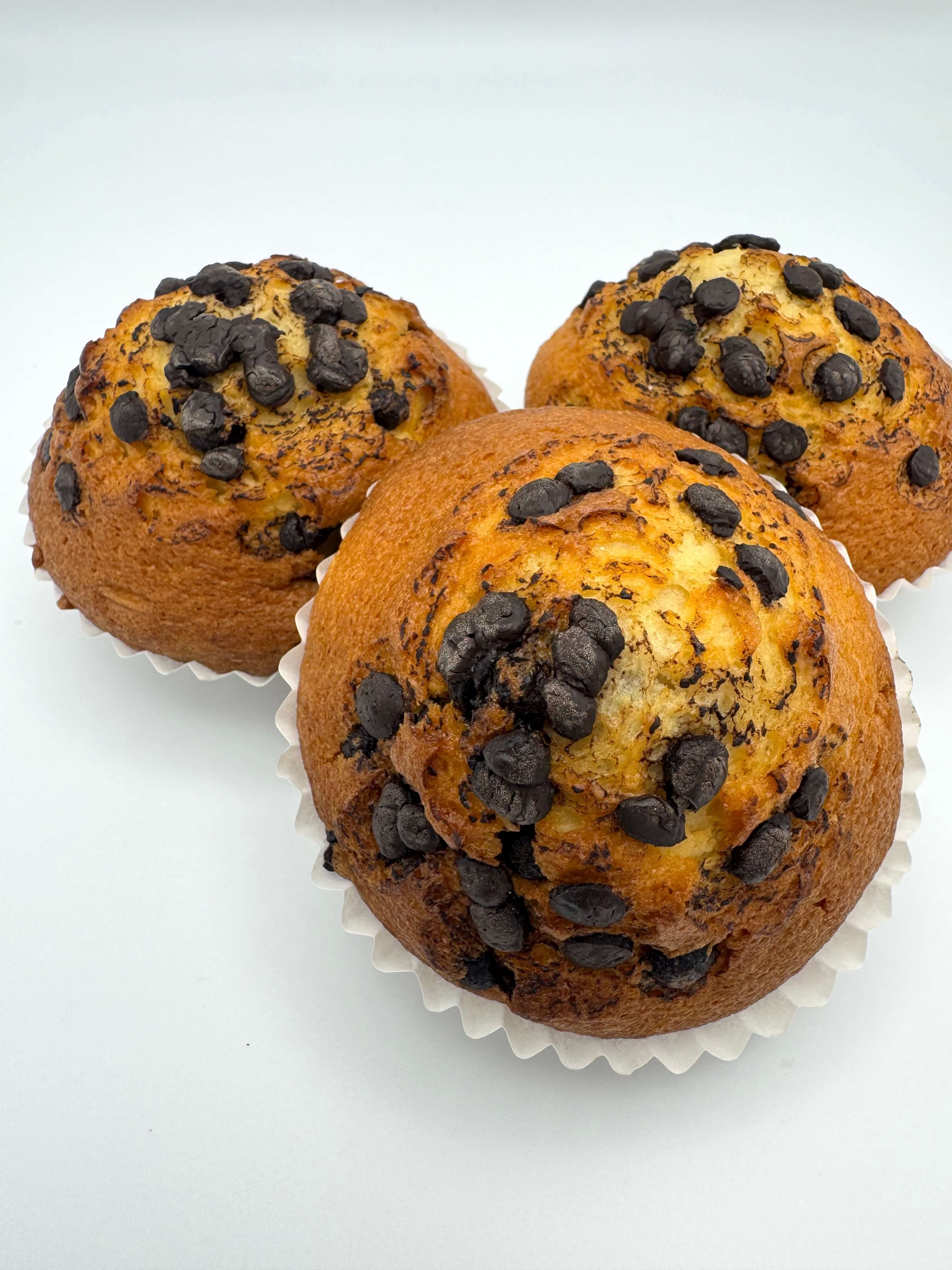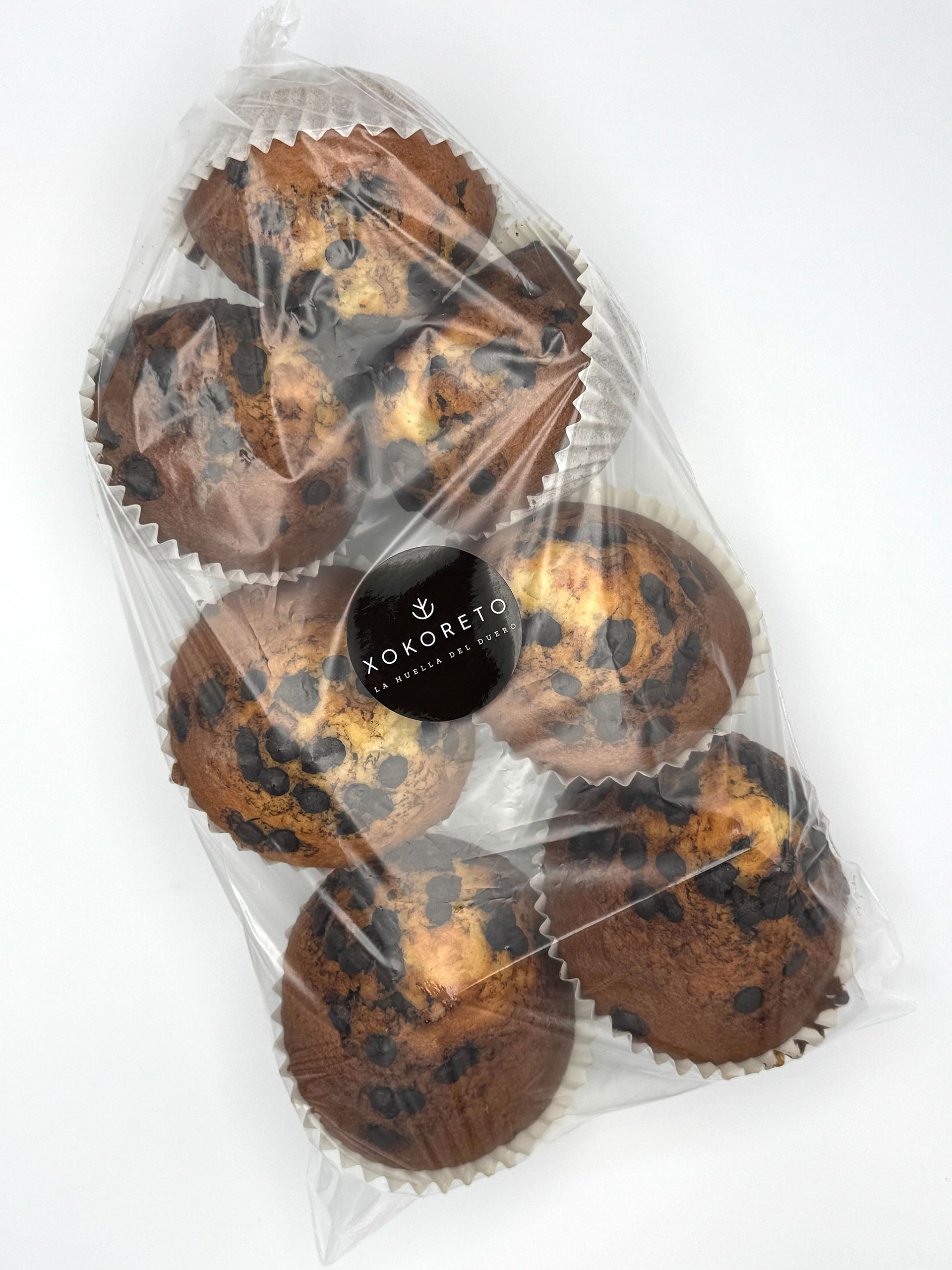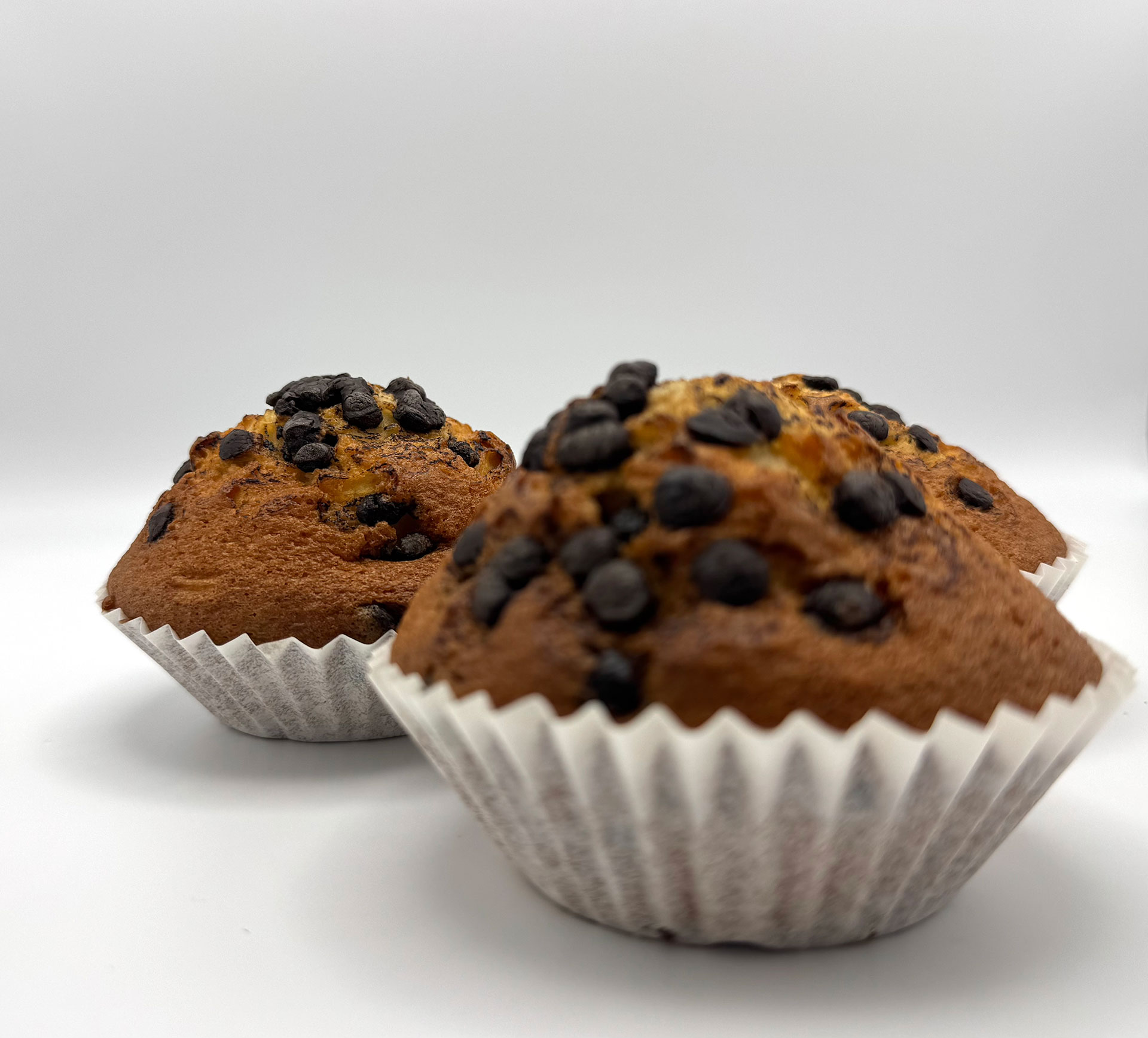 Para los más golosos nuestra versión de chocolate es una magdalena de leche con pepitas de chocolate negro. Horneadas a diario en nuestro obrador.