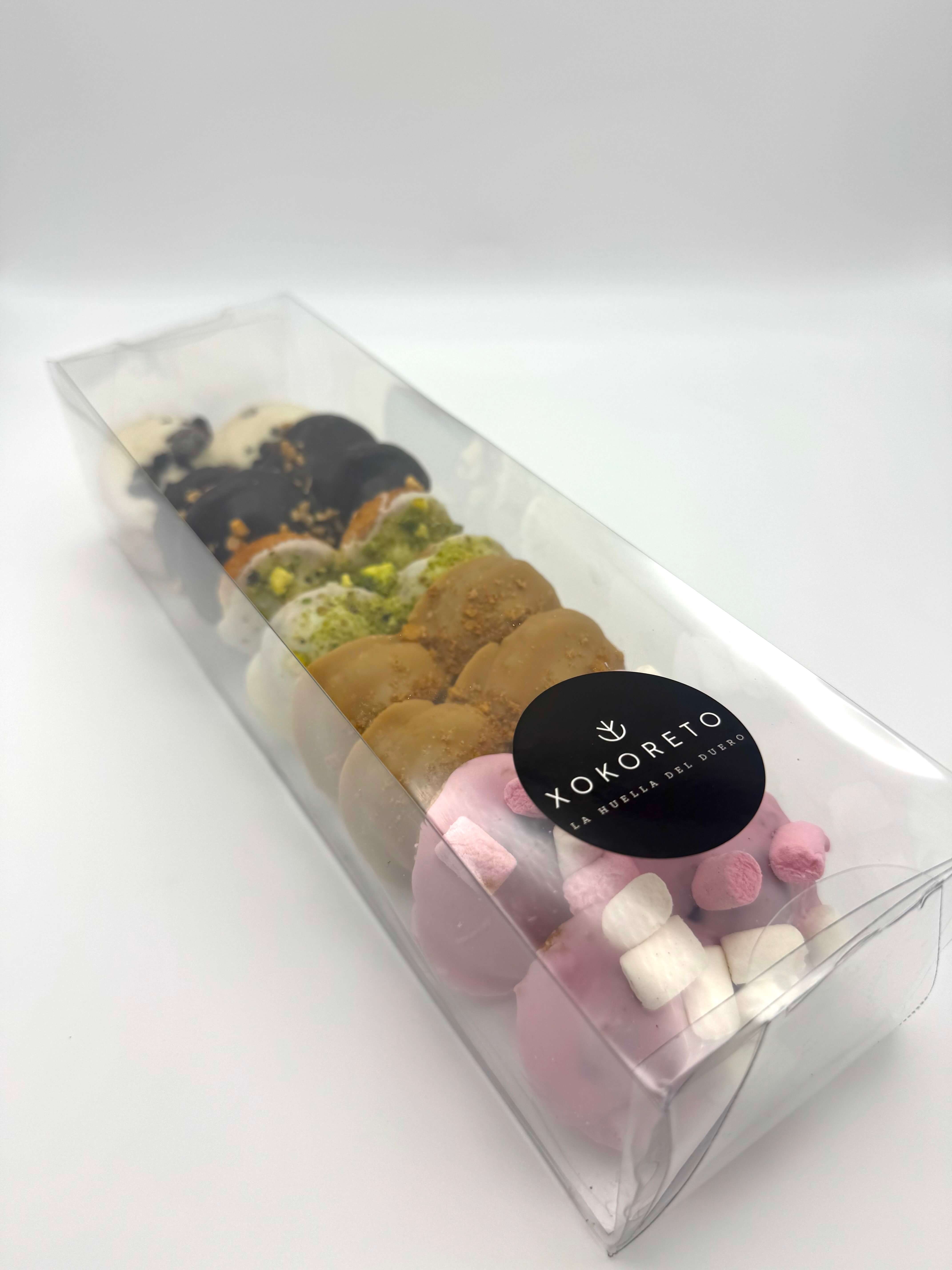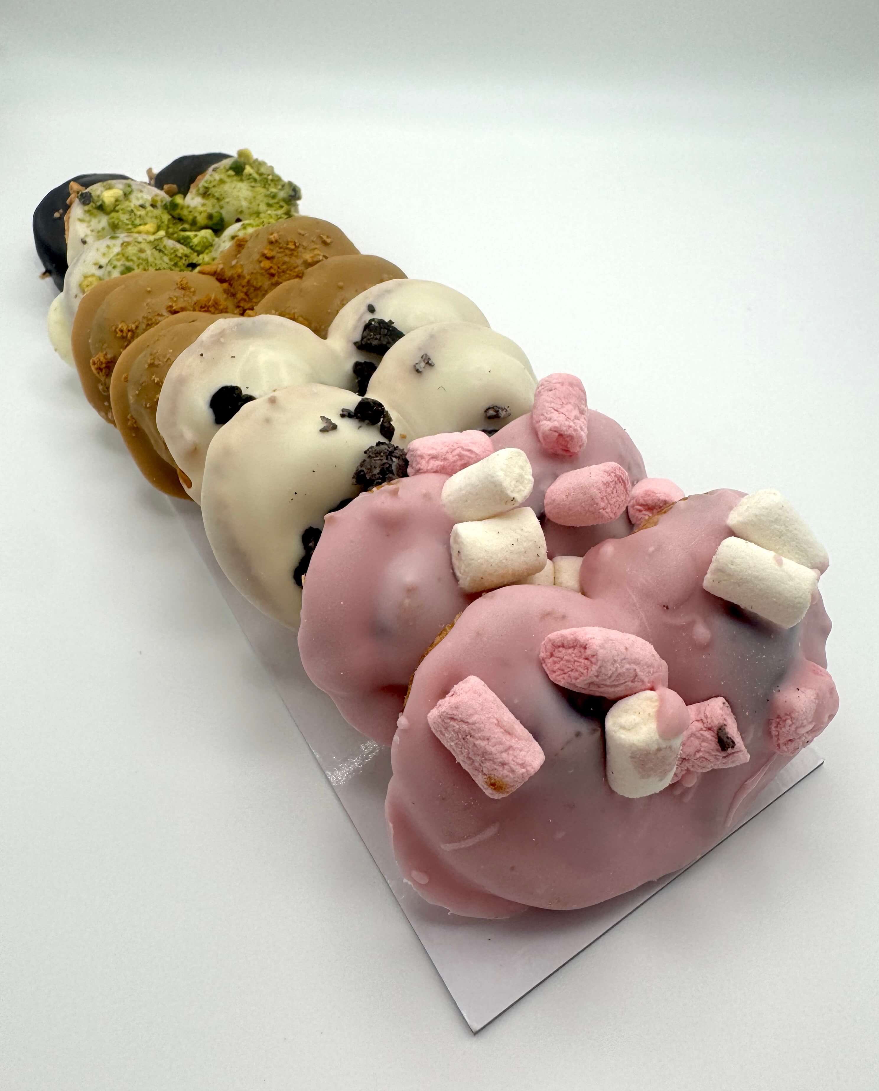 Palmeritas de hojaldre surtidas de diferentes sabores: Oreo, dulce de leche, fresa, kínder, pistacho.