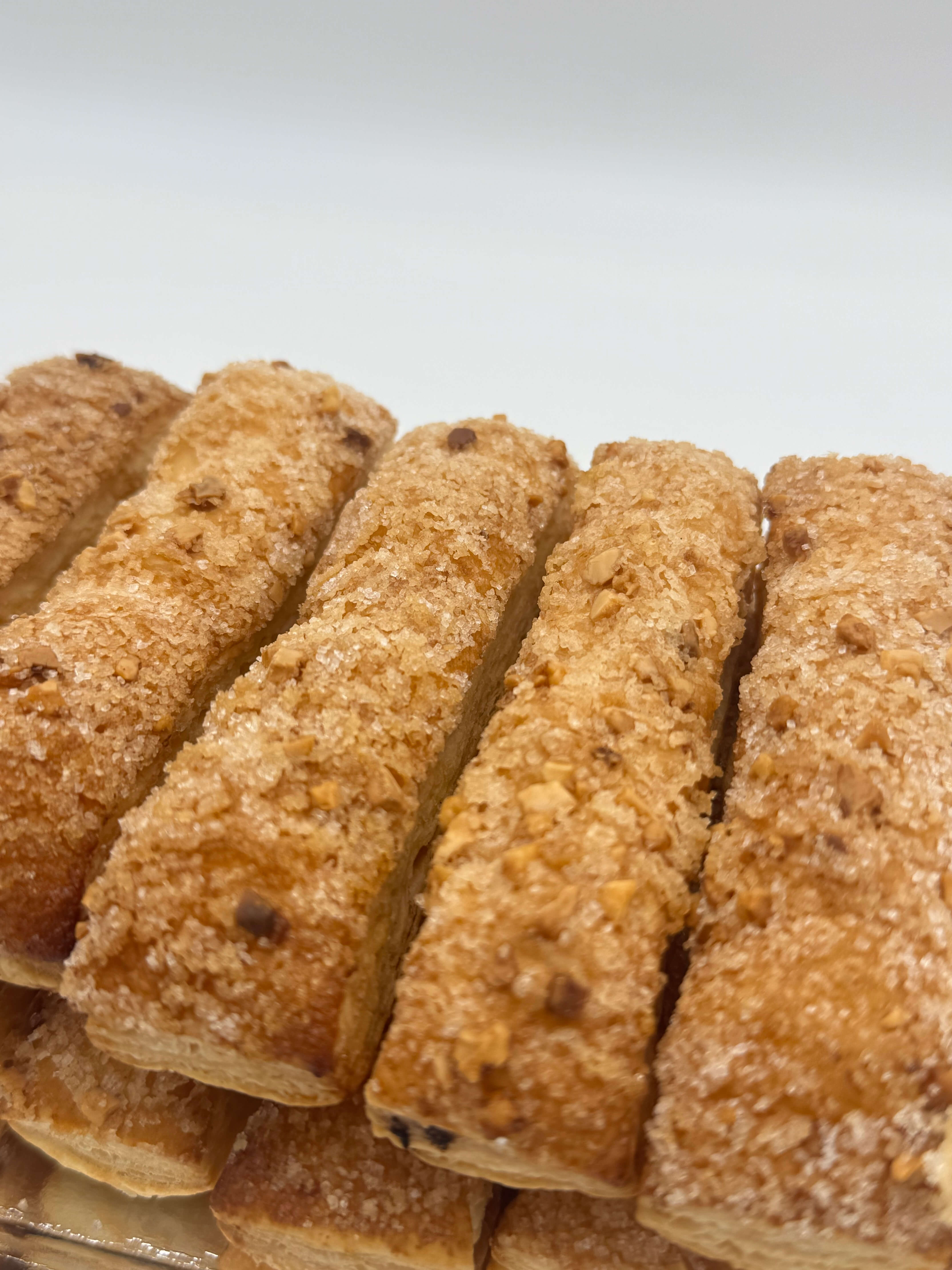 Delicadas y exquisitas teclas de hojaldre y mantequilla con almendra y un toque de miel.