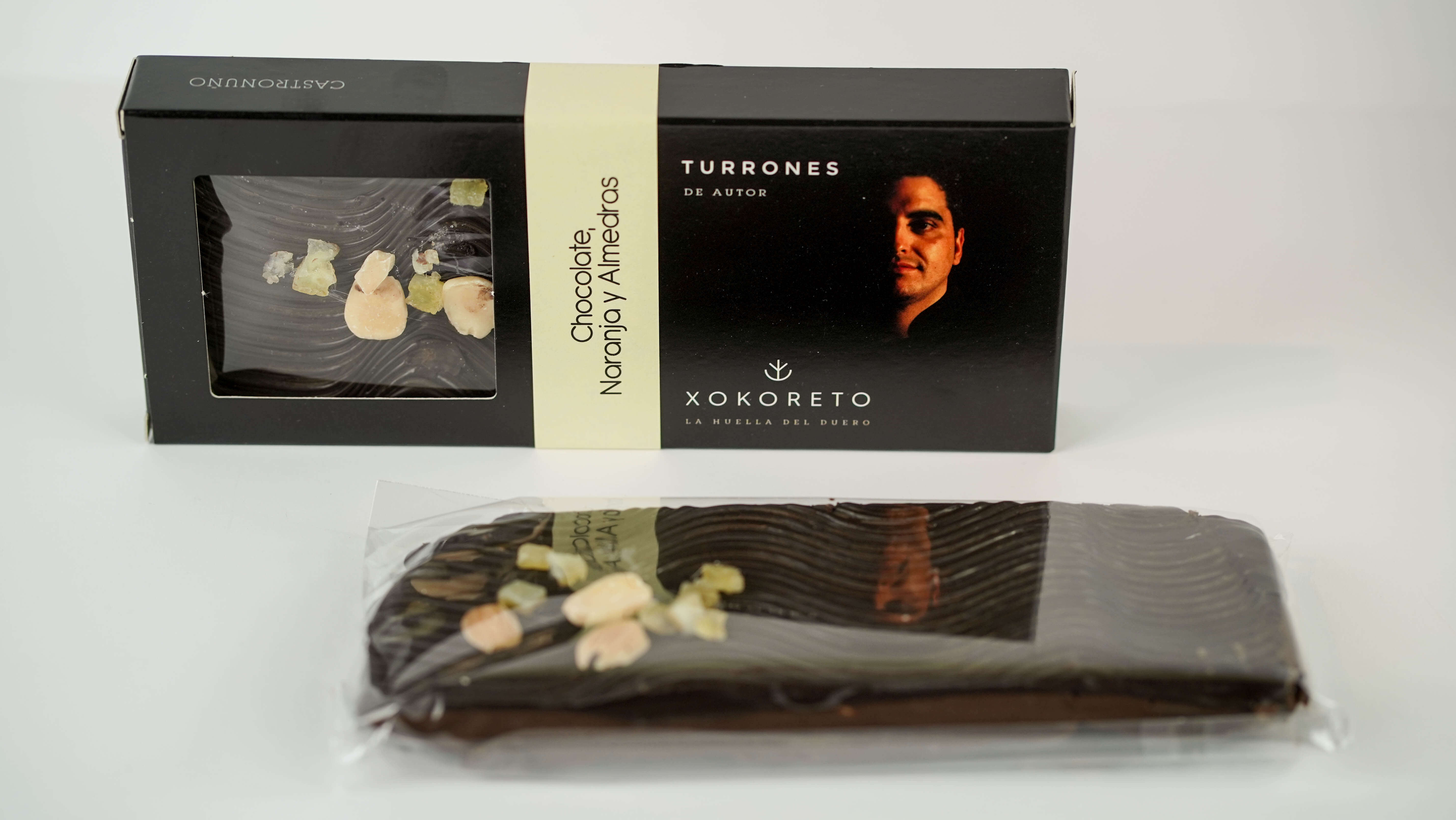 Turrón de chocolate, naranja y almendras